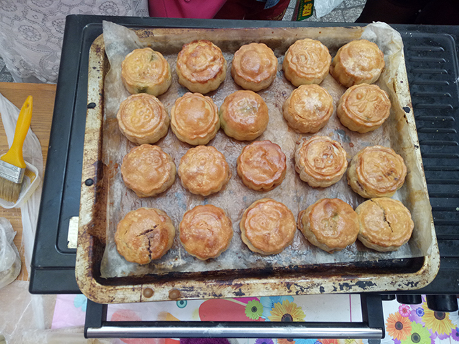 顧客在巧手師傅的指導下進行揉面、搟制水油皮、包餡料的月餅制作過程。大家邊拉家常邊親手制作,氣氛和樂融融。讓顧客在金海商業廣場感受到故鄉的溫情與團圓。制作好的月餅經過烤箱烤制后大家一起品嘗,歡聲笑語不絕于耳。