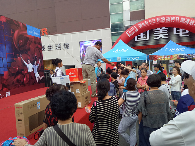 國美電器9.9內購會于今日上午09:00在國美電器主力店和金海商業廣場停車場同時進行,活動設有各類文藝表演及有關企業文化的知識問答,會場氣氛熱烈、有序。本次活動國美電器特設小禮品及各種大獎回饋消費者。 此次活動很好地宣傳并提高了金海商業廣場的品牌形象和社會認知度。