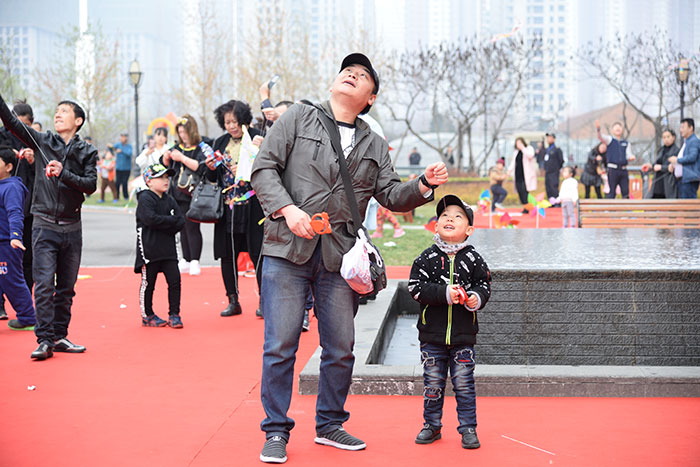 一年之際在于春,在春季放風箏,象征“箏箏”日上的美好愿望,各式五彩繽紛的風箏,與澄凈的碧空構成一副如畫景象,帶著對詩意自然和美好生活的期許越飛越高……