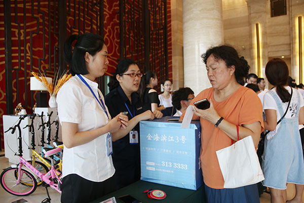 7月29日上午9點,只為金海業主辦理的專屬盛京銀行聯名卡繳納物業費、抽獎活動在濱江3號售樓處如火如荼的展開了。