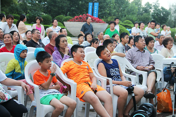 傍晚,習習涼風一陣一陣吹來,驅散了夏日的燥熱。在金海江畔花園小區內,早早就坐滿了前來觀看電影的金海業主,很多居民甚至是全家出動。業主們熱情高漲,納涼觀影兩不誤,好不愜意。社區電影的舉辦豐富了居民的精神文化生活,增進了鄰里關系。