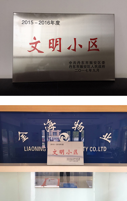 近日,在2015—2016年度精神文明創建先進典型評選中,振安區委、區政府共評選出五個文明小區,其中金海物業所管轄的江畔國際、濱江3號、溫泉小鎮三個小區獲得“文明小區”的榮譽稱號。