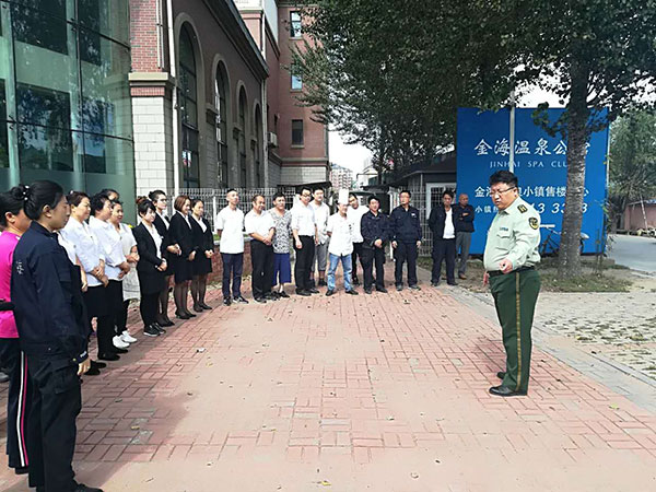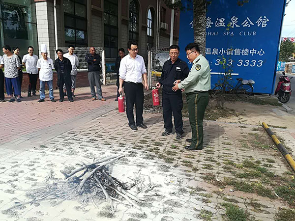 為提高員工整體消防技能及掌握有關消防處置方法,正確處理火災發生的程序,9月27日,金海溫泉公館邀請振安區消防大隊張指導員給溫泉公館,溫泉小鎮物業,溫泉小鎮售樓處三個部門進行安全消防技能培訓。張指導員認真講解了消防栓、滅火器的使用方法,以及安全消防的基礎知識。每一位員工都了解及學會如何正確使用滅火器,以及發生火災時如何采取應急措施,為“十一”期間公館消防安全做好準備工作。