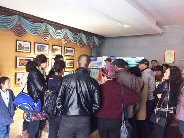 9:30分,一行人準時到達金海溫泉小鎮售樓處,置業顧問為參與活動的VIP客戶講解了金海溫泉小鎮的設計理念、園區布置以及房源戶型。很多客戶表示對溫泉小鎮的樣板房十分感興趣,于是在溫泉小鎮置業顧問的陪同下,參觀了樣板間。