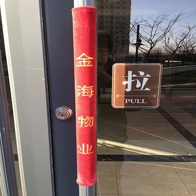 12月4日傍晚回家時,我走到單元門口,習慣性地刷卡、推門。咦,手扶門把手,怎么沒了往日冰涼刺骨的感覺?仔細一看,金屬門把手上套上了一層寫有“金海物業”的絨布套,頓時覺得一股暖流涌遍全身,從手心暖到心底……