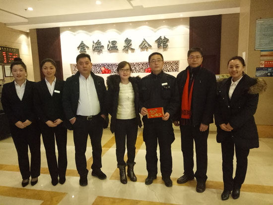 2018年2月15日除夕夜,金海集團總經(jīng)理莫丹、副總經(jīng)理劉中、副總經(jīng)理李郁及集團辦公室人員一同對除夕夜仍然奮戰(zhàn)在一線金海集團各崗位的員工進行了慰問,并代表集團公司送去了誠摯的祝福。