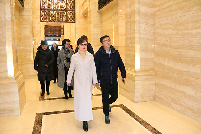 遼寧金海集團總經理莫丹女士代表金海集團董事會熱情接待了王迎行長一行貴賓。莫總向王迎行長一行介紹了金海濱江3號項目的區位資源、規劃特色、景觀優勢、建筑品質、文化建設等,陪同貴賓們參觀了濱江3號園區、樣板間和具有電影院、游泳館、健身房等完善設施的高端會所。