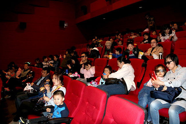 參觀結(jié)束后,家長(zhǎng)們帶著孩子一起觀看電影,高端影音設(shè)備與爆笑可愛的動(dòng)畫形象吸引著孩子們的目光,家長(zhǎng)們和孩子們一起享受親子時(shí)光。