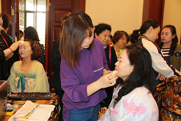 拍攝之前,化妝師用嫻熟的技藝將媽媽打扮得楚楚動人。“變身”之后,略施粉黛媽媽們仿佛變回當年的模樣,宛如歲月從未走過。每一位母親們都滿臉盈笑并美麗異常,穿梭在濱江3號園區,在疊翠溪旁,在紅花雕塑前,或是樹前留下美麗的靚影,展示著自己的魅力。