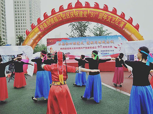 為慶祝偉大的中國共產(chǎn)黨建黨97周年,6月27日晚,在美麗的鴨綠江畔,丹東市臨江社區(qū)聯(lián)合轄區(qū)物業(yè)及居民隆重舉辦“建黨97周年慶典晚會(huì)”,金海物業(yè)應(yīng)邀參加了此次活動(dòng)并在活動(dòng)中獻(xiàn)上精彩的表演。當(dāng)晚,雖然下起了瀝瀝細(xì)雨,但前來觀看的市民卻絡(luò)繹不絕,現(xiàn)場氣氛十分熱烈。演出開始前,濱江3號全民多彩社團(tuán)文藝社的業(yè)主們?yōu)楝F(xiàn)場的所有觀眾表演了一段精彩的藏族舞蹈《心上的羅加》,讓人眼前一亮,贏得了臺下陣陣掌聲。隨之演出拉開大幕,在精彩紛呈的表演中,濱江3號管理部的管家和保安團(tuán)隊(duì)也登臺一展風(fēng)姿,表演了舞蹈《光榮的使命》,臺上的她們舞姿優(yōu)美,英姿颯爽,可謂是亦柔亦剛,給江城的父老相親和外地的游客展現(xiàn)了金海物業(yè)人的多樣風(fēng)采,大家掌聲雷動(dòng),讓人印象深刻。