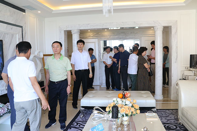 遼寧金海集團常務副總經理劉中、總經理助理兼物業公司總經理蘇瑩熱情接待了劉國強主席一行貴賓。劉總和蘇總分別向劉國強主席一行貴賓介紹了濱江3號項目的區位資源、規劃特色、景觀優勢、建筑品質、文化建設等,陪同貴賓們參觀了濱江3號園區、樣板間,濱江3號SOHO公寓和電影院、游泳館、社區食堂等配套設施。