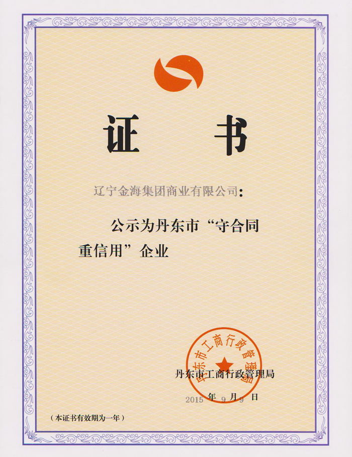 近日,商業公司順利通過丹東市工商行政管理局的各項審核,合同簽訂和管理得到了市工商局領導的高度認可。此次,商業公司已經是第七次獲得省、市工商局授予的“守合同重信用”企業榮譽稱號。