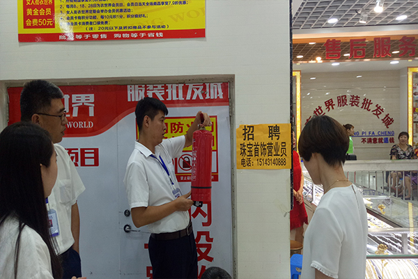 9月4日上午10點商業公司常總帶領各部門負責人對商場以及商場內各業戶進行消防安全檢查。