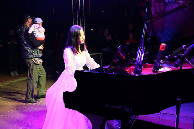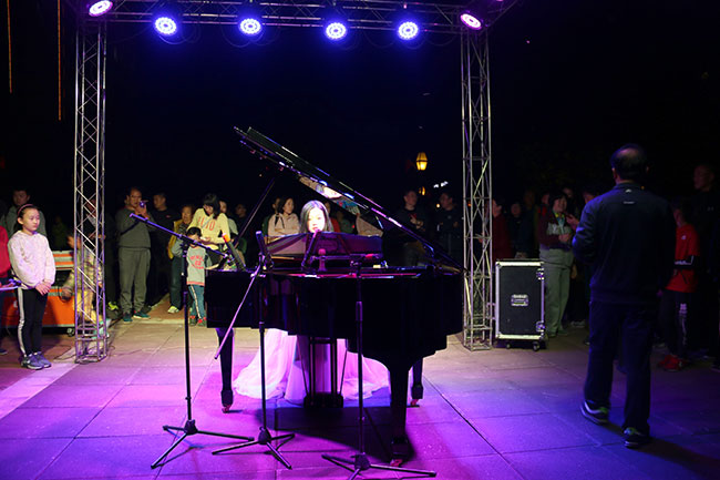 紅花廣場旁,鋼琴演奏。洋洋盈耳,馨心淡雅。