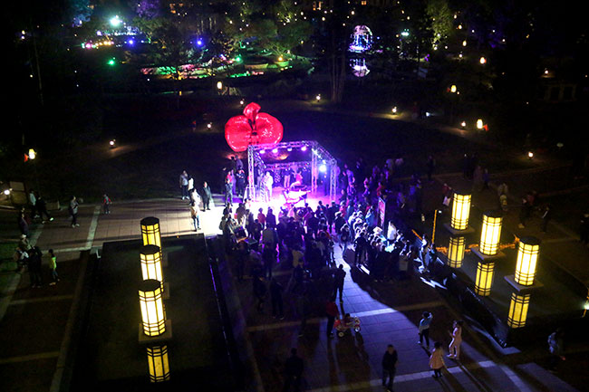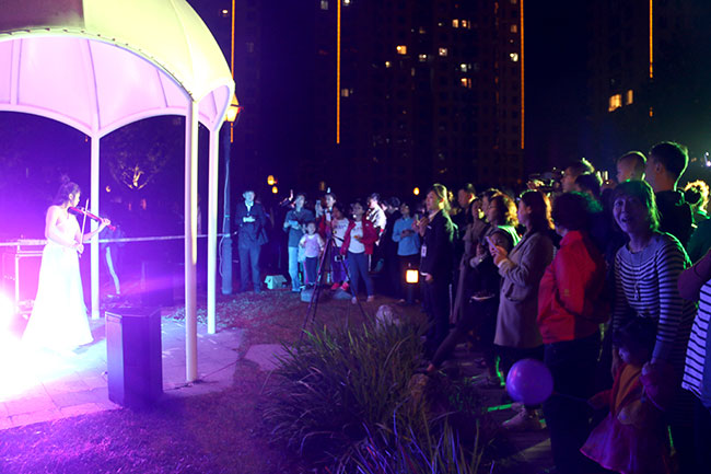 19:30,夜幕降臨,明月高掛,月圓如鏡,月色灑滿大地,美麗的濱江3號園區(qū)里,美妙的音樂聲響起,流淌在浩大而優(yōu)美的園區(qū)。