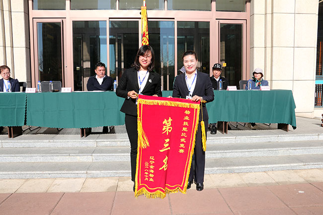 丹東市小區(qū)辦李主任、金海集團副總經(jīng)理李郁、金海集團辦公室主任李秀悅分別為獲獎單位頒發(fā)錦旗。