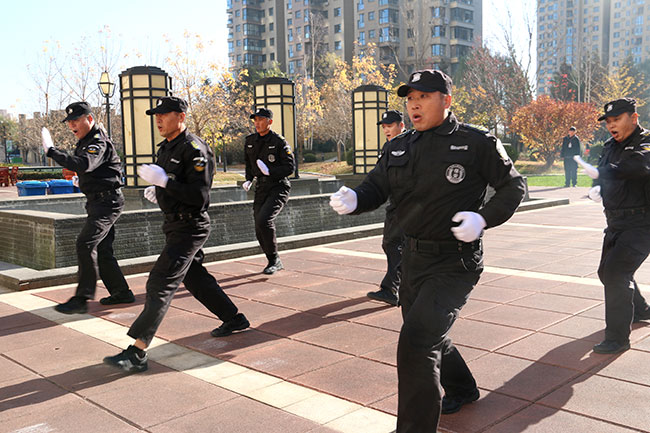 金海物業(yè)的保安有嚴(yán)格的錄用、培訓(xùn)、操練和日常工作標(biāo)準(zhǔn)規(guī)范,他們之中很多是部隊復(fù)轉(zhuǎn)軍人,還有的是武警出身。