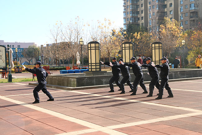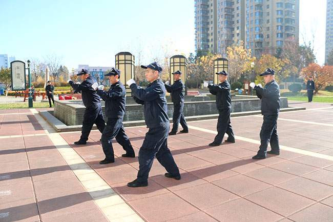 比賽當(dāng)中,各保安隊在隊長帶領(lǐng)下,按要求完成全套參賽項目。他們隊列整齊,動作標(biāo)準(zhǔn),擒敵拳招招精準(zhǔn)到位,個個身法矯健,形神兼?zhèn)洌瑳]有長期的專業(yè)訓(xùn)練養(yǎng)成是無法練就這樣的本領(lǐng)的。
