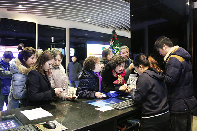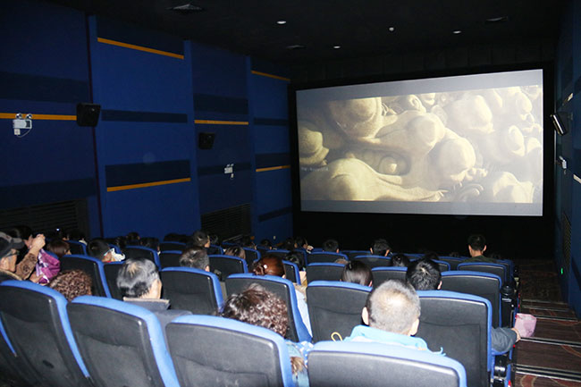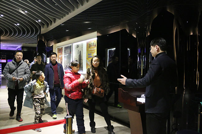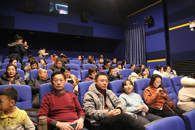 電影還未開始,業主們就已經紛紛趕到影院現場,領取電影票,隨后陸續進入影廳,三五成群在影廳聊著天,不一會功夫,龐大的業主隊伍已經占據整個影廳。