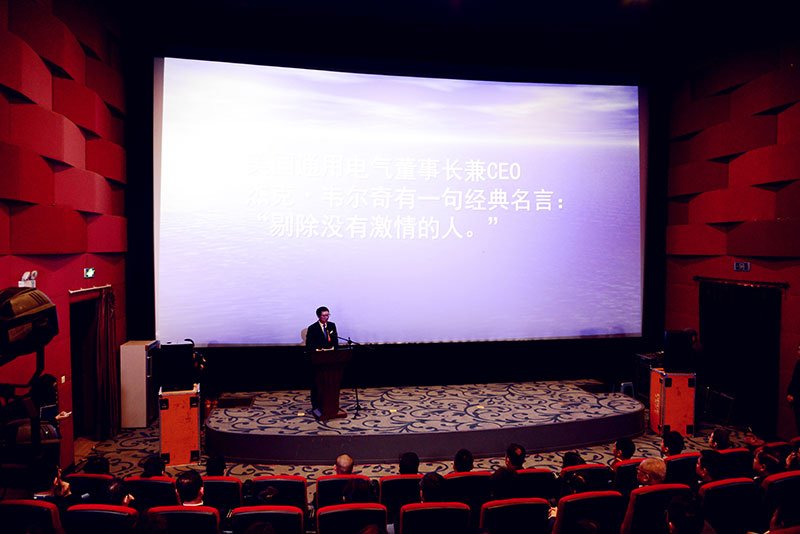 3月9日上午,高翔董事長在金海大廈電影城2號影廳,為金海集團全體管理人員進行員工培訓。