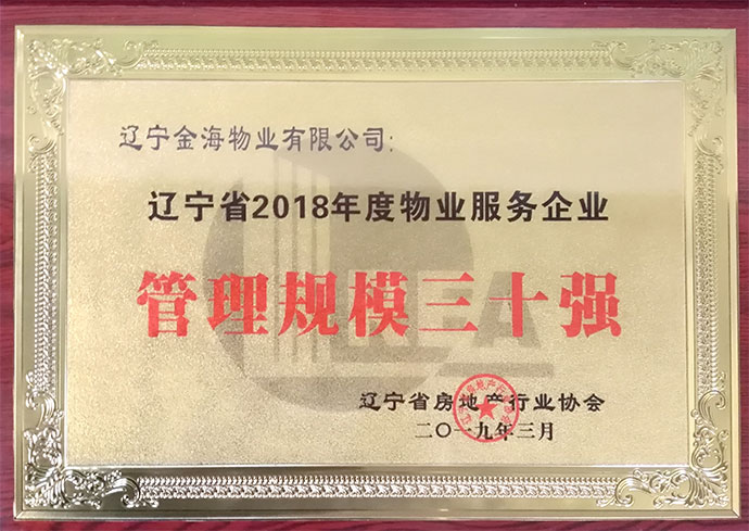 遼寧金海物業有限公司憑借自己的實力入圍遼寧省物業行業“管理規模三十強”,排名第二十六位,受到省房地產協會的表彰,成為丹東市唯一獲此殊榮的物業企業,為丹東物業企業的發展又樹立了新的標桿。