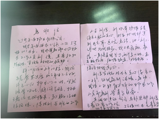 我是金海溫泉小鎮(zhèn)5號(hào)樓201業(yè)主,我非常感謝小區(qū)物業(yè)工作人員劉俊、王春紅和陳國(guó)棟等同志對(duì)我的救助。去年10月28日上午十點(diǎn)多,我因出差勞累過度,加上身體不太好,行走在小區(qū)物業(yè)門口時(shí),突然眩暈、嘔吐、胸悶氣短。金海物業(yè)員工王春紅見此情景,馬上聯(lián)系保安隊(duì)長(zhǎng)陳國(guó)棟找到了當(dāng)班保安員劉俊。劉俊非常熱情,就像親人般地關(guān)心我,打車把我護(hù)送到丹東市第一醫(yī)院就診。到醫(yī)院后他一刻都不停地為我掛號(hào)、找大夫、取藥,一直陪我長(zhǎng)達(dá)兩個(gè)小時(shí)。直到服藥后,我病情穩(wěn)定好轉(zhuǎn),他才把我送回家。