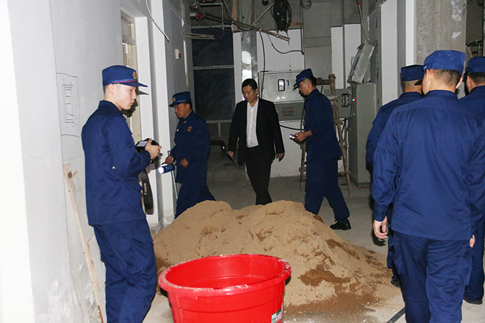 晚上9點,演練圓滿結束,金海大廈所有保安全程參與消防演練,為消防官兵提供消防設施指引、樓層目標指引、疏散人群、現場維護等。通過此次聯動演練,提升了金海大廈人員安全防火意識,提高了預防和撲救火災技能,更好的學習和掌握了有關消防專業知識。