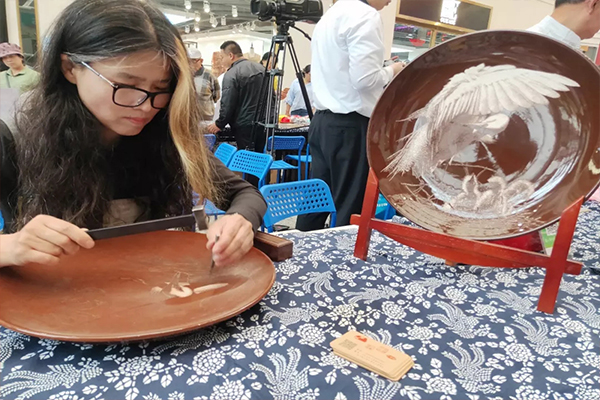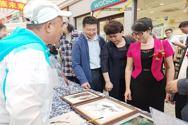 活動中展示、展銷了面塑、糖畫、剪紙、團扇、皮影戲、羽毛畫、等多種非遺項目。非物質(zhì)文化遺產(chǎn)傳承人向在場觀眾講解所傳承項目的起源、意義以及制作過程,參展的非遺產(chǎn)品吸引了廣大群眾駐足欣賞、購買,深受在場觀眾的喜愛,場面十分火熱。