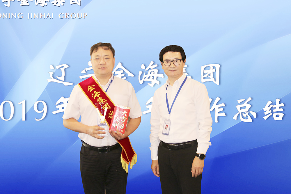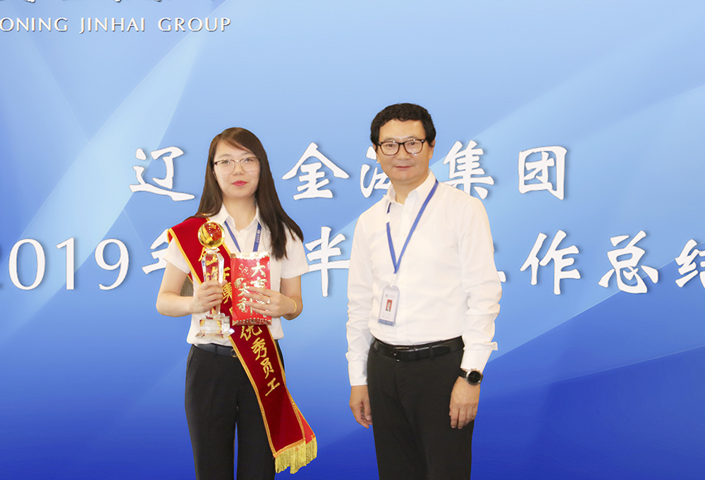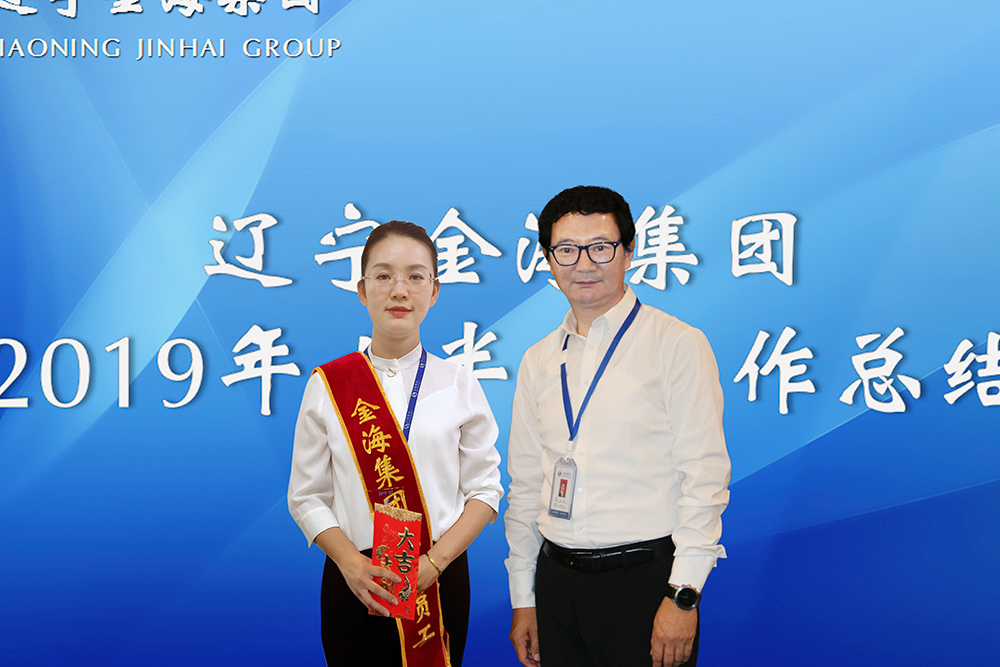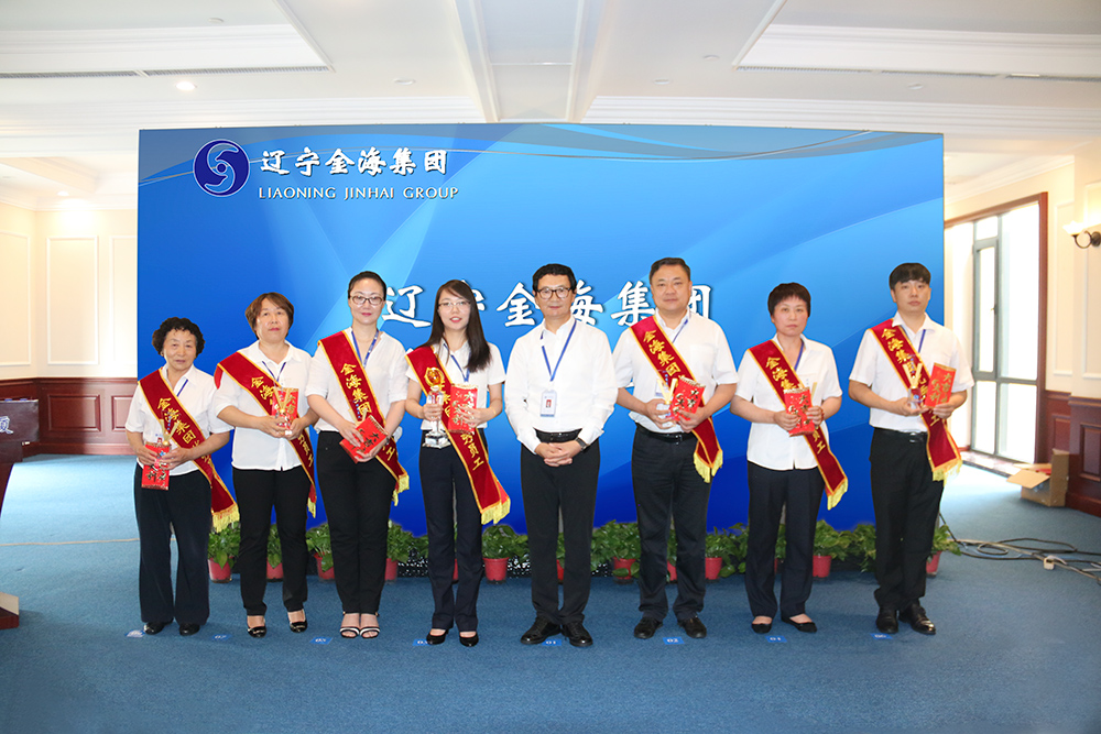 金海集團董事長高翔與上半年優(yōu)秀員工合影
