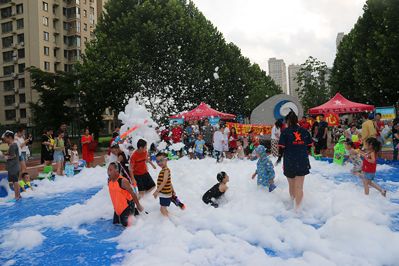 隨后夏日泡泡趴活動現(xiàn)場吸引了親子家庭熱情參與,現(xiàn)場人氣火爆,而且現(xiàn)場不斷有業(yè)主家庭參加游戲互動,家長與孩子一起體會夏日泡泡趴的樂趣,享受難得的親子時光。