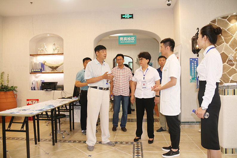 蘇總向臧克會長詳細介紹了金海集團在房地產開發、物業服務、供熱服務、商業服務以及企業文化建設等方面的經營成果,濱江3號項目的區位資源、景觀優勢、建筑品質等,陪同貴賓們參觀了濱江3號園區、樣板間、電影院、游泳館、社區食堂和金海熙康體檢中心等配套設施。