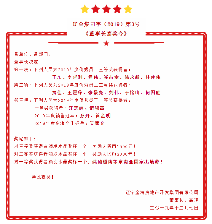 遼寧金海集團2019年度先進表彰