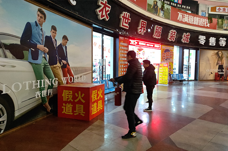 演練開始前,演習總指揮于曉東對室內(nèi)消火栓、滅火器等消防器材一一檢查,講解強調(diào)正確的使用方法,并對公司員工、商場業(yè)戶現(xiàn)場講解商場內(nèi)建筑消防設施、消防水源、安全出口、疏散通道等重點部位設置的必要性,以及商場內(nèi)發(fā)生火災如何在第一時間現(xiàn)場滅火,如何進行119報警,如何組織人員疏散,如何搶險救援及安全防護應急處理。
