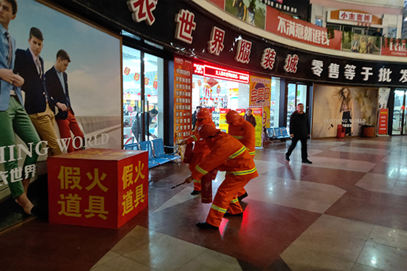 隨后,假設災情并開展實戰(zhàn)演練:假設女人街衣世界入口處發(fā)生火災,經(jīng)員工發(fā)現(xiàn)。隨即現(xiàn)場進行初步滅火、現(xiàn)場工作人員按下消防報警按鈕報警,消防控制室人員接到報警立即啟動相關(guān)消防設備,通知微型消防站人員啟動滅火和疏散預案,通訊聯(lián)絡組立即撥打119報警并通知領(lǐng)導發(fā)生火情,疏散引導組立即組織現(xiàn)場人員疏散,滅火行動組接到報警三分鐘內(nèi)立刻趕赴現(xiàn)場滅火,搶險救援組立即進行重要物資撤離,安全防護組立即進行火災現(xiàn)場管制并做好接應引導應急救援支隊消防官兵到達火災現(xiàn)場。經(jīng)過微型消防站各組人員的共同努力配合,演練取得了圓滿成功。