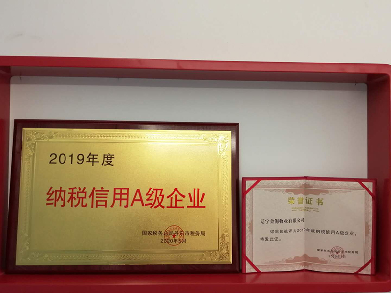 遼寧金海物業有限公司榮獲國家稅務總局丹東市稅務局頒發的“2019年度納稅信用A級企業”稱號。