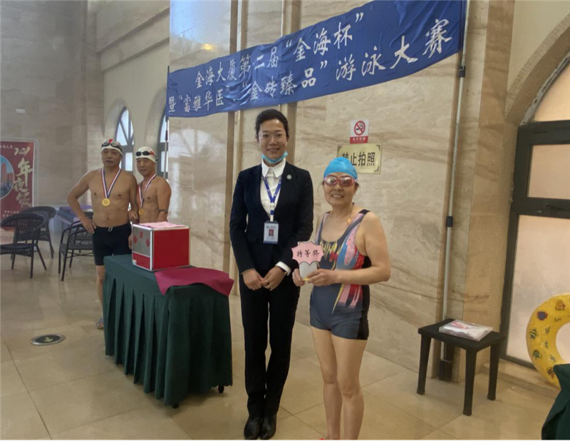 最后游泳館負責人王娜經理感謝各位業主的積極參與,并宣布金海大廈游泳館第二屆“金海杯”游泳大賽圓滿結束!