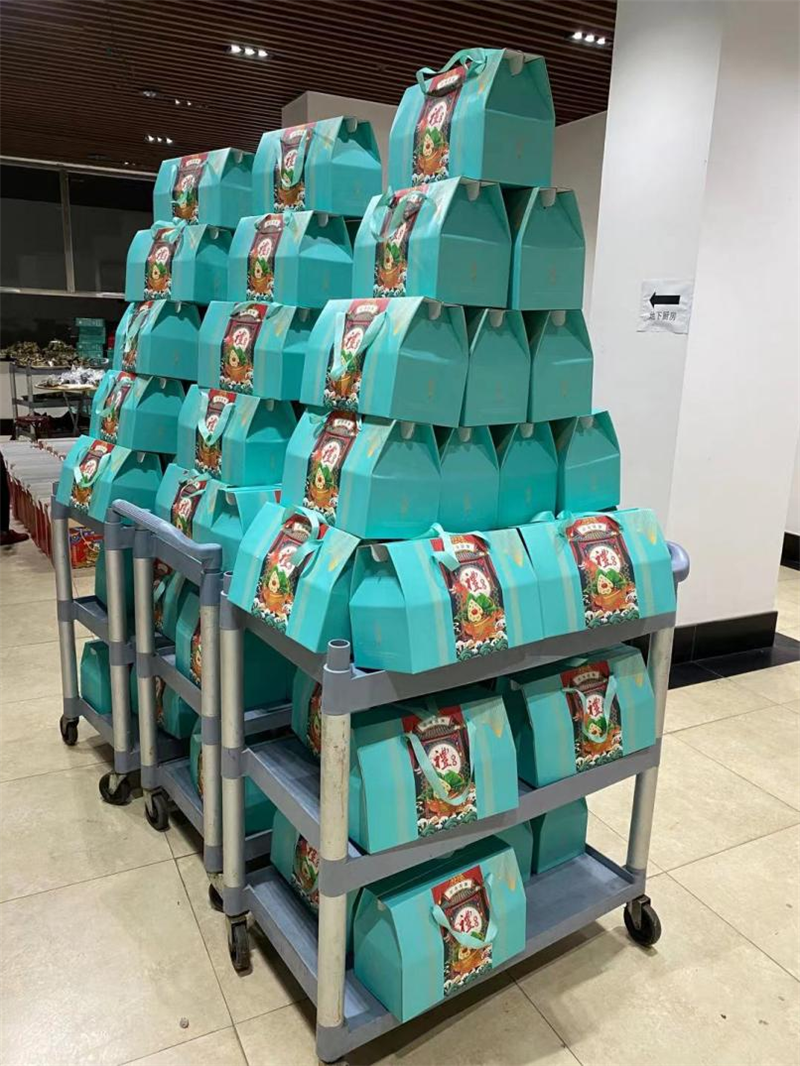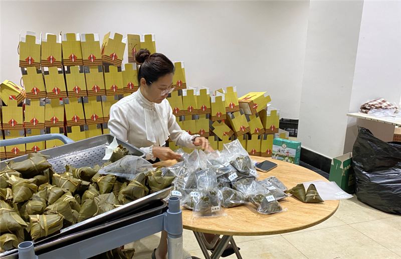 和其他酒店相比,金海大廈的傳統(tǒng)手工粽子備受青睞,購買粽子的顧客,基本都是專門來買手工粽子的,盡管傳統(tǒng)手工粽子餡料種類沒有市面上豐富,但是口感更勝一籌。金海大廈出品的純手工粽子供不應求,銷售量已達1600+,廚房已經(jīng)忙得不可開交。金海大廈總經(jīng)理遲慧慧親力親為,也加入到粽子裝箱的隊伍當中,勤勞的員工們都盡力為大廈的業(yè)績獻出自己的一份力量。