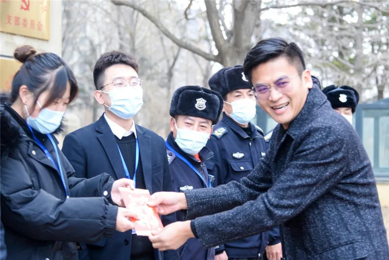 “今天是除夕,應該是和家人團圓的日子,但你們還在堅守崗位,辛苦了,給你們拜個早年,祝大家新春愉快,身體健康,萬事如意!”總經理賈本鑫一行與值班人員一一握手,詢問他們的工作、生活情況,叮囑他們要特別注意安全事項,并向他們致以節日的問候,送上新春大禮包,轉達董事長高翔的新春問候,感謝他們為金海集團所做出的奉獻。同時,希望大家一如既往,以高度的責任心和飽滿的工作熱情,全力以赴做好節日期間安全生產、疫情防控等工作,做好禁燃煙花爆竹的宣傳工作和服務民生各項工作,確保轄區內和諧穩定,全力維護企業的和諧穩定發展。并囑咐大家在做好工作的同時,共同度過一個歡樂祥和的春節。一聲聲問候,一句句祝福,寄托著公司領導對一線職工的關愛。